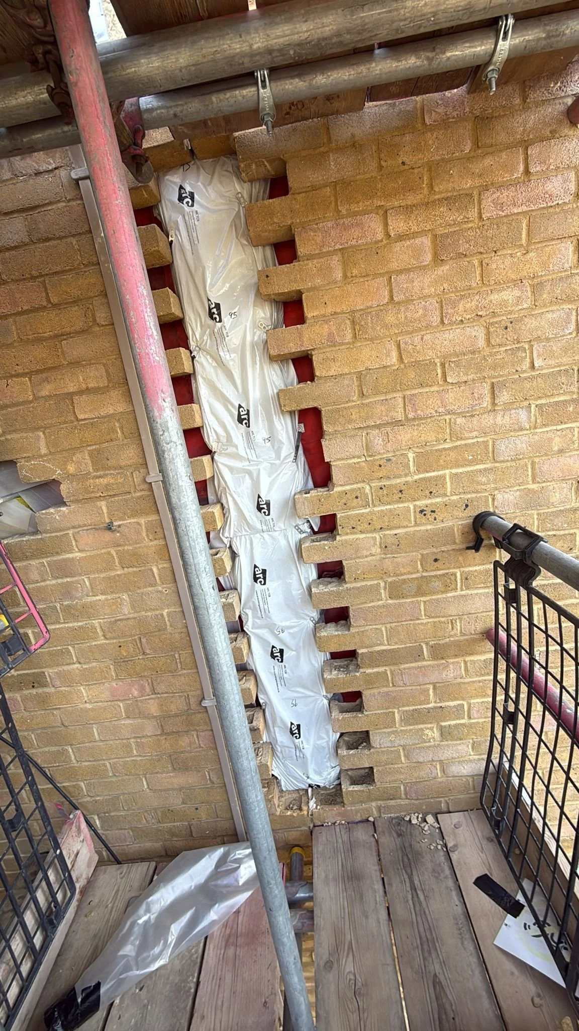 Offering both compartmental remediation & full façade demolition we carry out all works to the façade including scaffolding, Demolition, SFS reboarding, fire barrier install and re-cladding in brickwork.